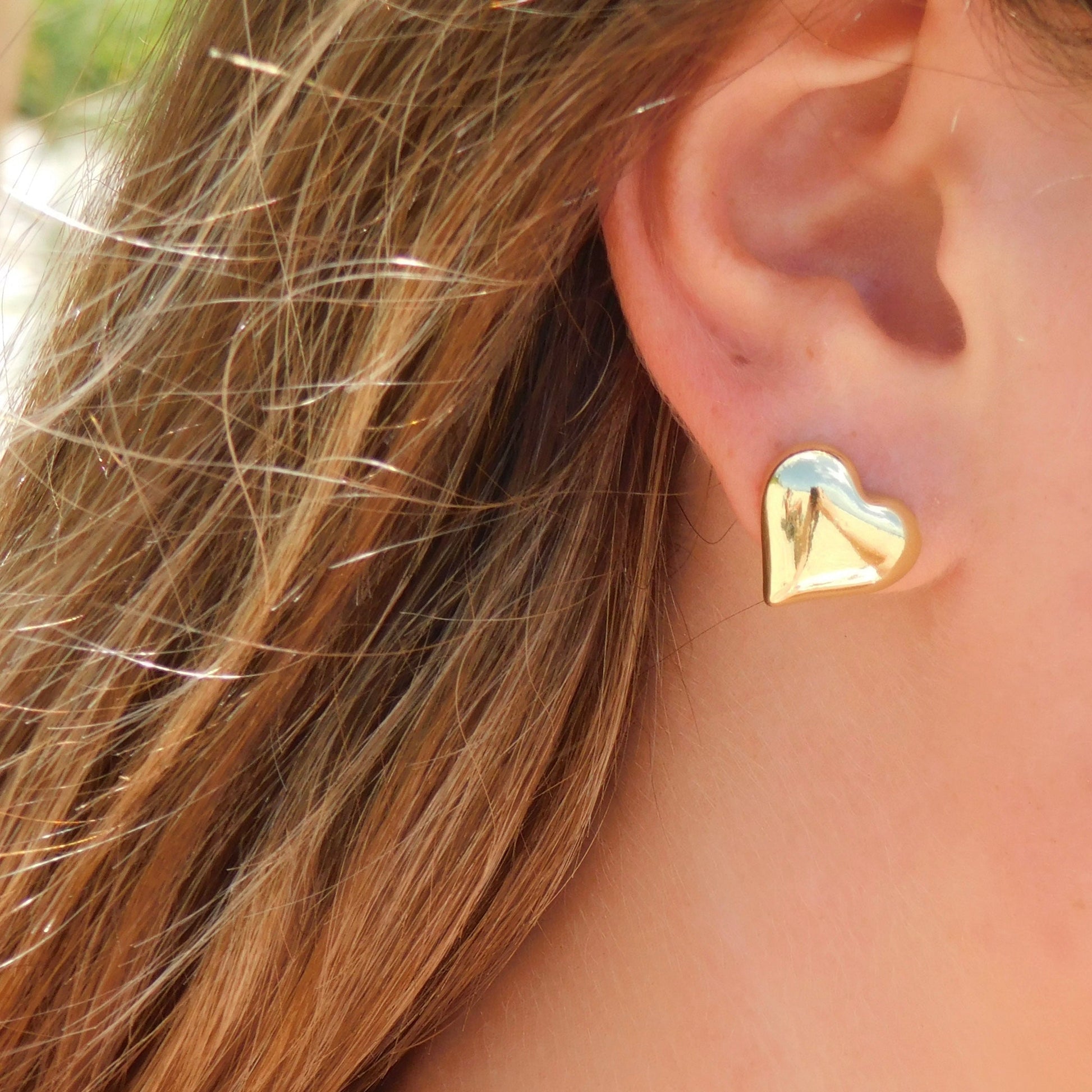 A little love goes a long way. These bold, puffed heart studs are your new go-to for flirty, fun accessorizing. Designed with a glossy gold finish and just the right amount of chunk—because your jewelry should match your energy.